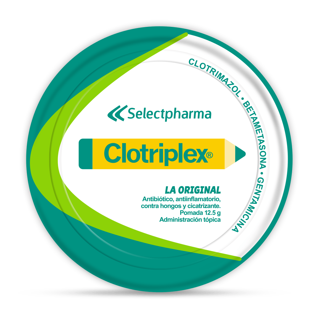 Clotriplex® de Selectpharma es un tratamiento dermatológico que combina clotrimazol (antimicótico), betametasona (corticosteroide antiinflamatorio) y gentamicina (antibiótico). Su fórmula está diseñada para combatir simultáneamente infecciones bacterianas y fúngicas en la piel, reduciendo la inflamación y favoreciendo la cicatrización.